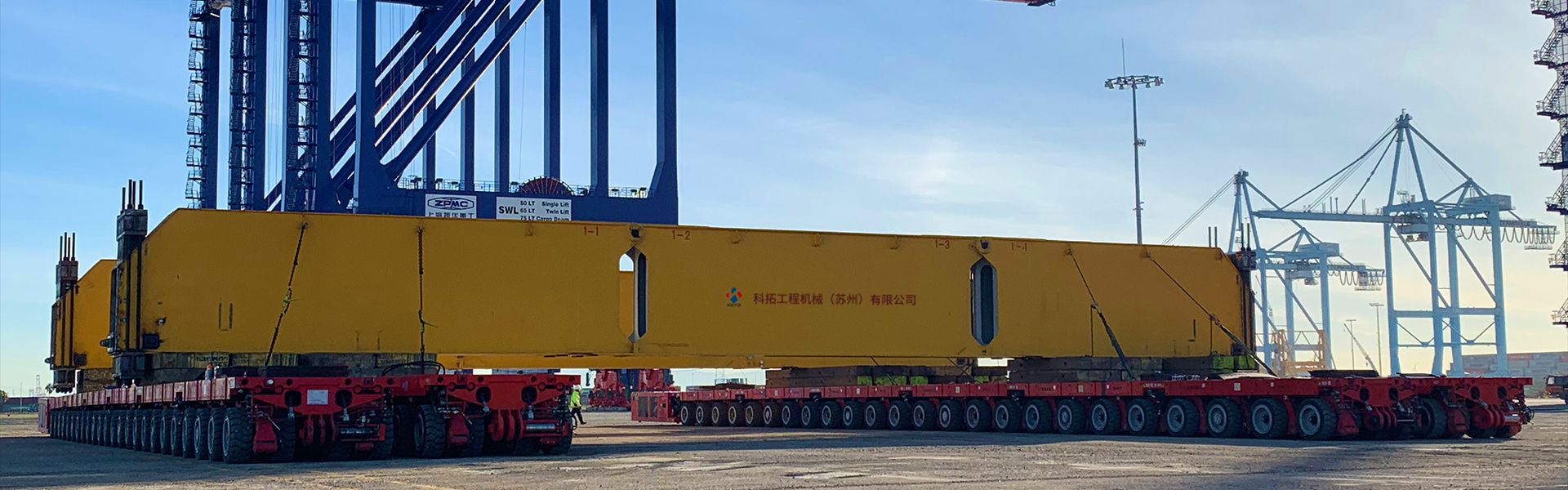 公司現有各型號液壓動力平板運輸車30余臺,SPMT128軸線,主要型號包括KOTO-50噸、 KOTO-75噸、 KOTO-100噸、 KOTO-125噸、 KOTO-150噸、 KOTO-200噸、 KOTO-260噸、 KOTO-320噸、 KOTO-380噸、 KOTO-430噸、 KOTO-480噸、 KOTO-500噸、 KOTO-550噸、 KOTO-600噸、 KOTO-650噸、 KOTO-800噸、 KOTO-1000噸等。